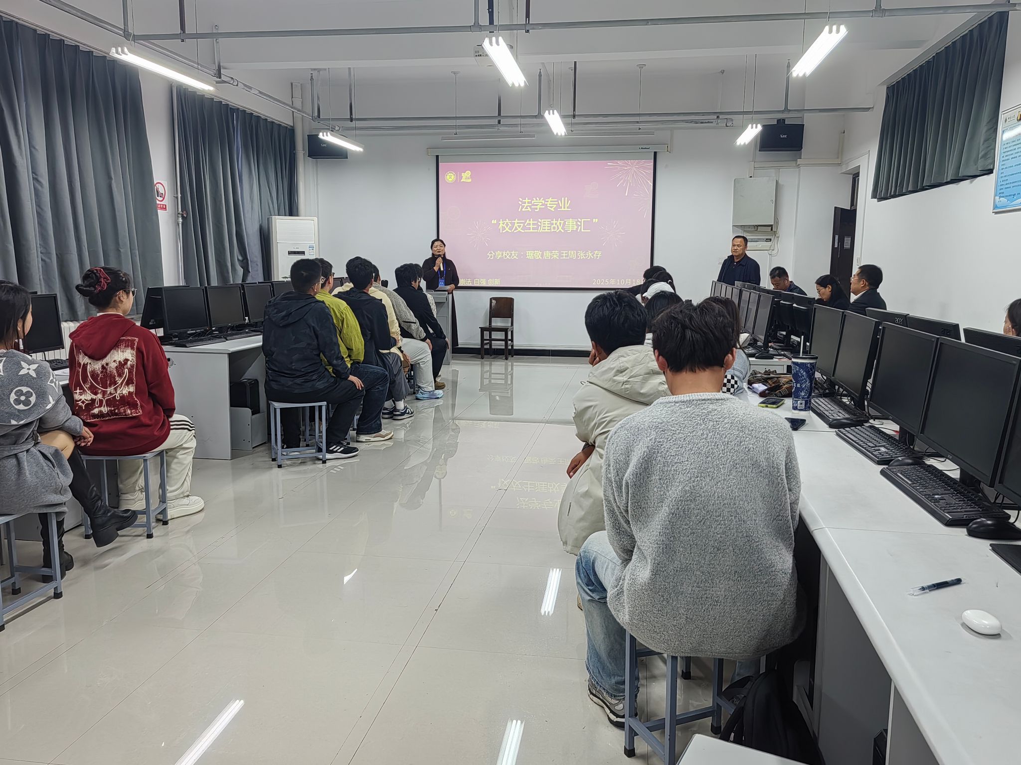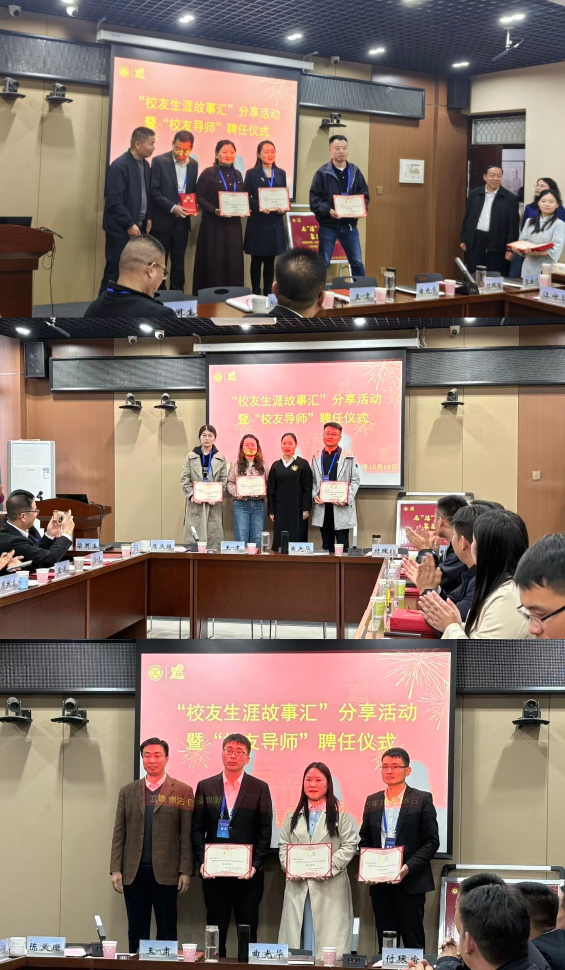 聘任仪式后,10位“校友导师”结合自身成长经历,分专业为学弟学妹分享了自己的生涯经历和人生感悟。各系室负责人林东、田闯、牛宗岭和高金娣分别主持本专业分享活动。