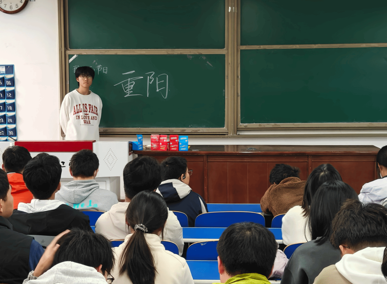 知识产权251班将文化学习与艺术创作相结合,开展了“重阳小课堂”活动。同学们通过经典诗词诵读、习俗知识抢答等形式,进一步深化对重阳文化的理解。随后的海报创作环节,同学们以创意与才华勾勒出一幅幅佳作,将重阳的“美”与“暖”展现得淋漓尽致。