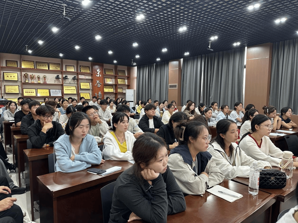 2025年9月28日下午,我院“2025级新生入学教育启动仪式暨‘开学第一课’”主题活动在3号组团楼A607隆重举行。学院全体领导、新生辅导员、2025级班主任及全体2025级新生齐聚现场,共同开启新生的大学成长篇章。本次活动以“理想信念教育、院史院情教育、成长目标教育”为核心内容。启动仪式由学院党委副书记陈义珊主持。