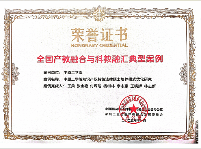 11月14日至16日,第二十七届中国国际高新技术成果交易会(简称“高交会”)暨2025第二届产教融合与科教融汇论坛在深圳举行。经学校研究生处推荐,我院院长王肃教授团队成员共同完成的《中原工学院知识产权特色法律硕士培养模式优化研究》产教融合案例,从全国586个案例中脱颖而出,成功入选“全国产教融合与科教融汇典型案例”并在高交会上展示,吸引了与会专家、学者及产业界代表的广泛关注。