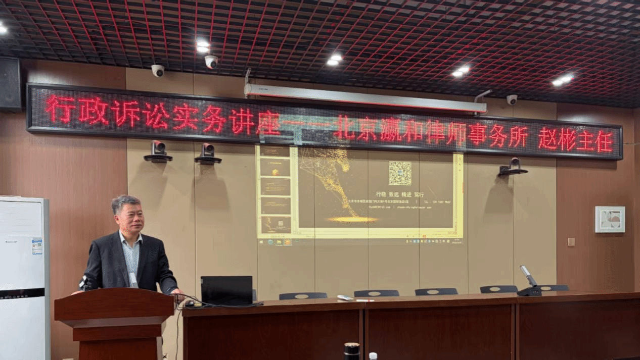 在讲座上,赵彬主任对我校即将更名河南电子科技大学表示祝贺和期待。随后,赵律师以行政诉讼领域中的九个法律理论实务问题,包括关于被告资格认定、起诉期限、行政诉讼受案范围、房屋征收安置案件的审查等主题进行分别讲述。