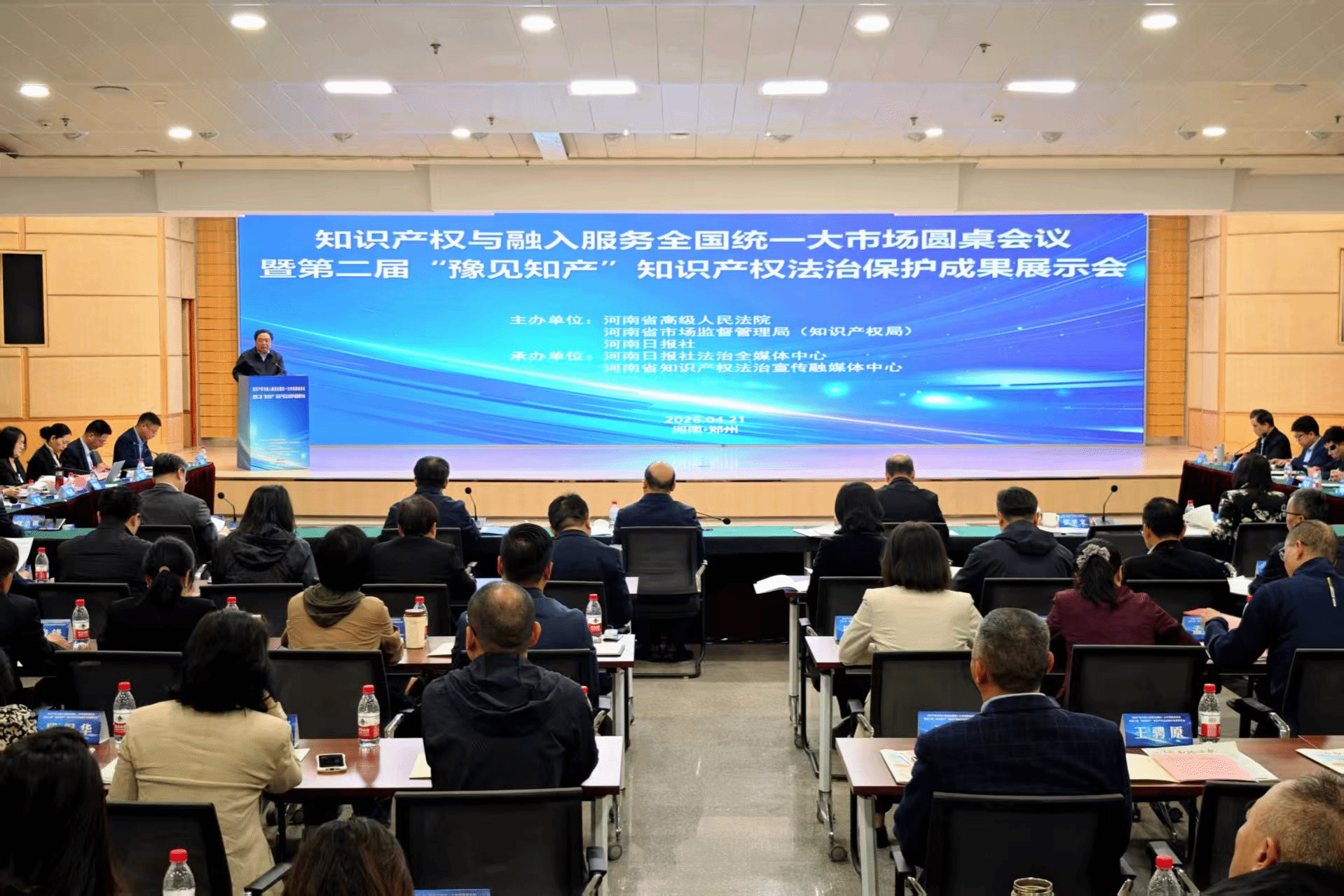 2026 年 4 月 21 日,“知识产权与融入服务全国统一大市场圆桌会议暨第二届‘豫见知产’知识产权法治保护成果展示会” 在郑州举办。本次会议由河南省高级人民法院、省市场监督管理局(知识产权局)、河南日报社联合主办,来自全省司法、行政、学界、企业界的代表齐聚一堂,围绕 “以高水平知识产权保护服务全国统一大市场、发展新质生产力” 主题展开深入研讨。我院副院长张金艳教授应邀参会并发言。